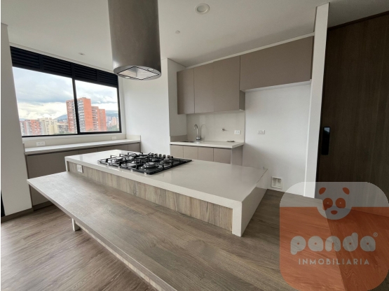 Apartamento de lujo en alquiler en el Poblado cerca al CC. Santa Fe, cuenta con un area de 105 mts, 2 alcobas amplias mas estudio ideal para oficina o sala de TV, 2 baños completos y 1 baño social modernos con acabados de lujo, sala comedor con ventanales de piso a techo con vista panoramica, balcon amplio con excelente vista, cocina integral abierta, excelente iluminacion natural en todos sus espacios, 2 parqueaderos privados y cuarto util.